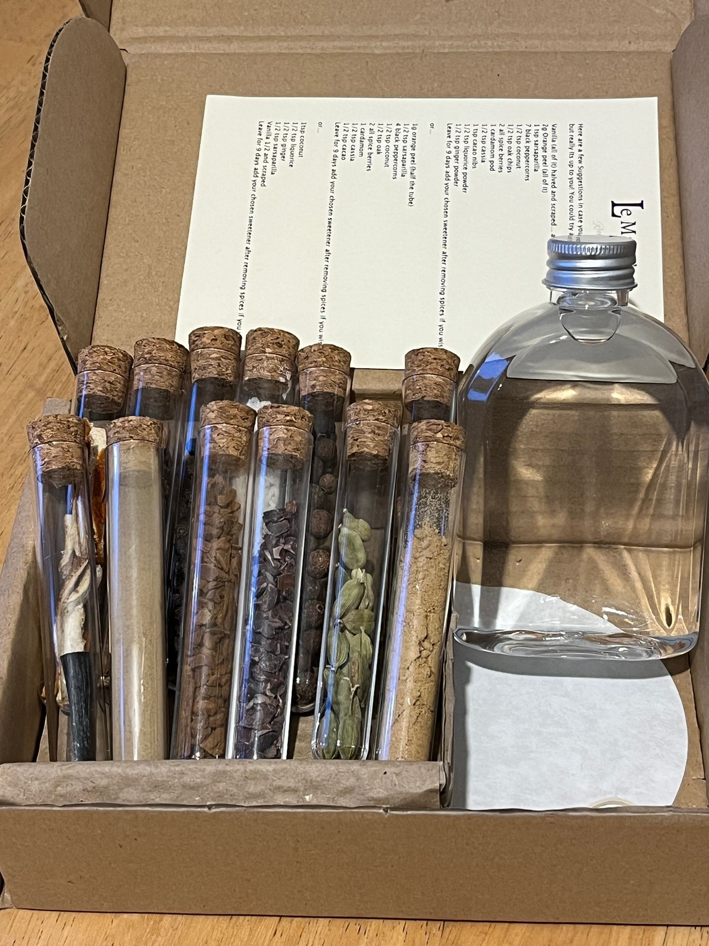 This kit contains a 200ml bottle of rum which you can spice up with as many spices as you like!